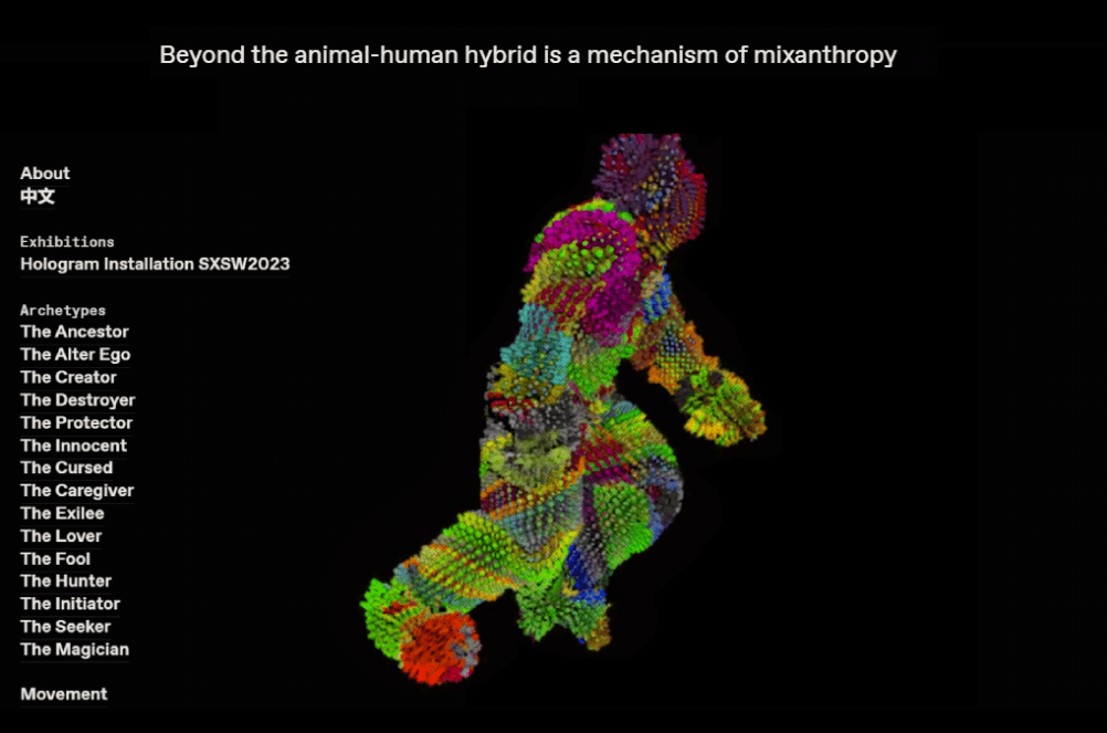 Mixanthropy is an imaginary shapeshifting journey about the body in transition, visual, and behavioral. The term, mixanthropy, encapsulates a deity’s potential to glide between versatile body forms. Explored through media art incorporating motion capture, retargeting, metamorphosis, and machine learning, it is a future bio-mythology with the idea of animal-human shapeshifting … Continue reading Yiou Wang and Meichun Cai – Mixanthropy