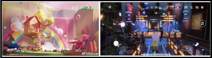 e.g. The VR concert, themed ”Summer Roaming’‘; connects four scenes or segments: summer roaming, song and dance performances, interactive games, and campfire talks.
